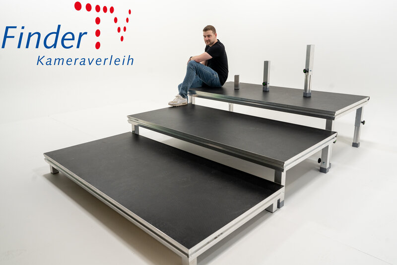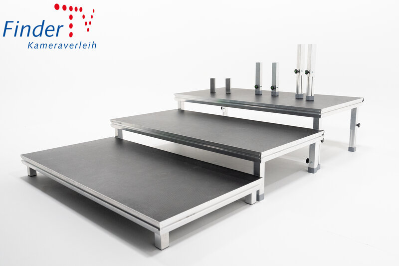 Verfügbar sind 11 Bühnenelemente 1 x2 m inkl. Beinen wahlweise 20cm oder 40-60cm hoch, sowie 2 Bühnenelemente 1x1 mit Viertelkreis.