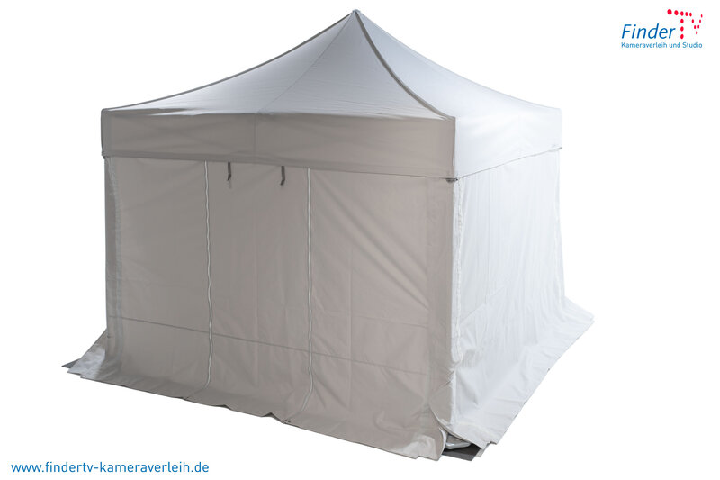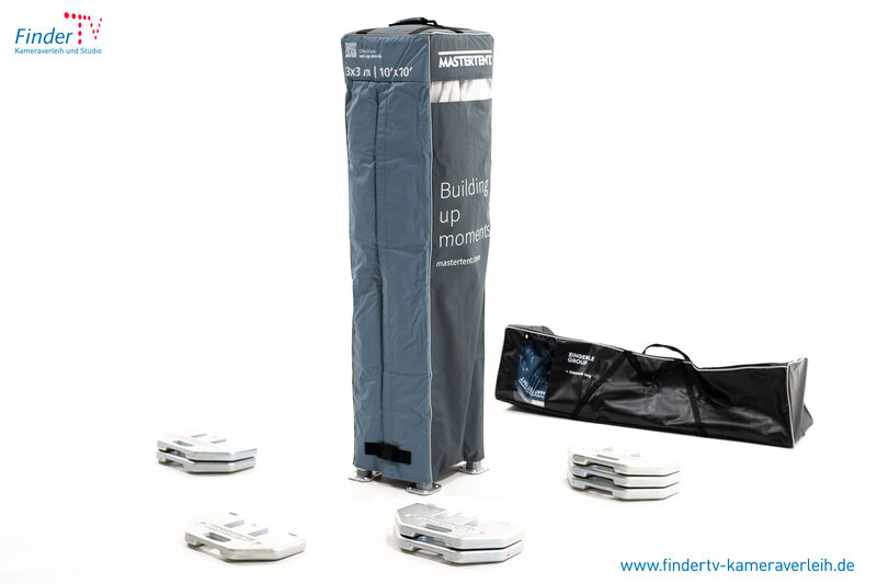 Das Mastertent 3x3m macht keine Kompromisse. Es läßt sich innerhalb von 5 Minuten von 2 Personen aufbauen und schützt zuverlässig vor Wind und Wetter. 4 Seitenwände, davon eine mit Tür. Die mitgelieferten Gewichte 4 x 28 KG stabilisieren das Zelt auch bei starken Windböen.