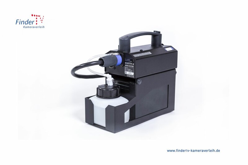 Der kleine 250 ml Tank mit dem speziellem Scotty II Fog, ist direkt am Gerät angebracht und liefert Fluid für ~25 min Nebel auf voller Last.